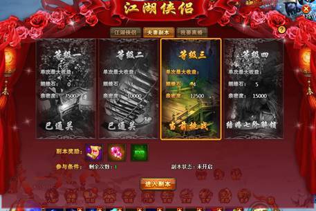 每日的夫妻副本都是会产出亲密度的,而夫妻副本是2人同时在线才能同意进入的,击杀BOSS之后会产出亲密度卷轴,产出的亲密度卷轴是根据副本难度计算的,当然BOSS会小概率额外产出亲密度卷轴的。