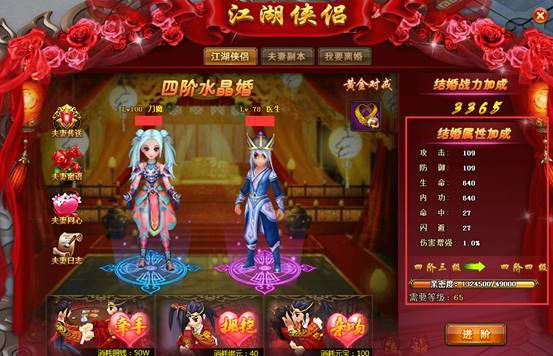夫妻等阶一共12阶5级。等阶越高,属性加成越多。