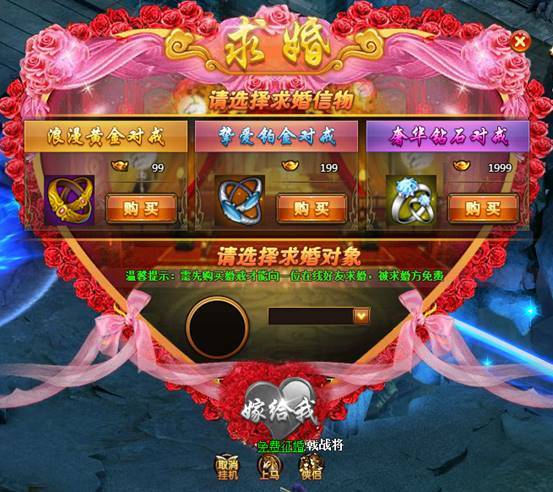 求婚对象只能同势力的玩家,角色性别不限。