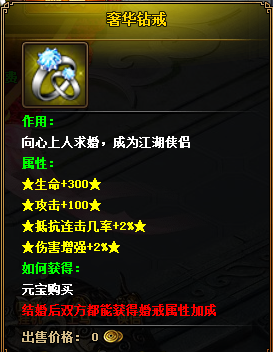 求婚戒指一共分为3种,每种戒指增加的属性是不同的。价格越贵增加的属性越多。