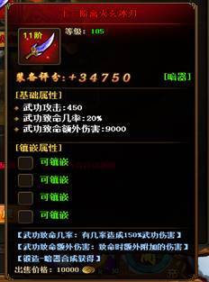 占位附加属性:武功攻击、武功致命几率、武功致命附加伤害(赋属增加的是攻击)
