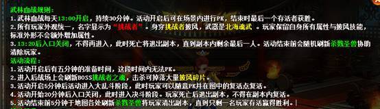 直到竞技场内仅剩一人。活动结束前,会刷新副本BOSS。