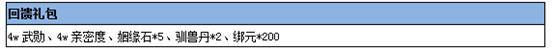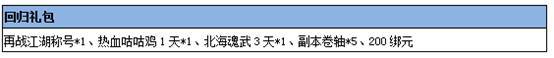 2) 回归福利:回归玩家可领取回归礼包一份并获得回归特权buff,每日登录可领取回归礼包,回归期间充值可获得专属礼包