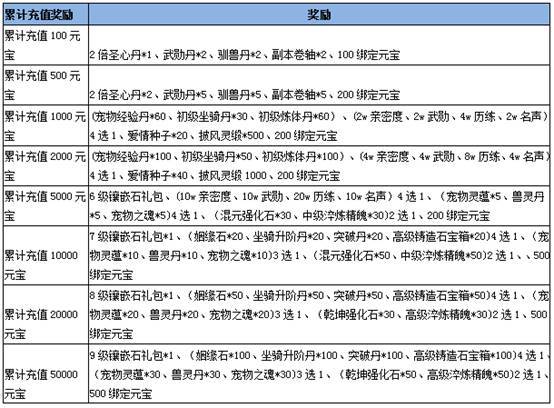 活动规则:活动时间内玩家累计消费达到一定额度可获得额外奖励