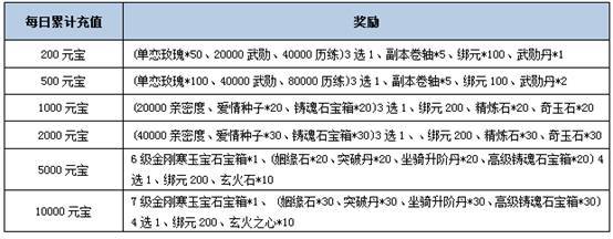 活动规则:活动时间内单日累计充值达到一定数量即可领取相应奖励
