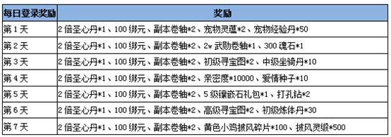 登录第二天:副本卷轴*1、20000历练值、1.5倍经验丹*1、背包解锁符*1