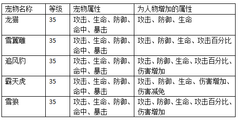 激活宠物后宠物可以出战帮助攻击,宠物自身属性可提升,并拥有战斗技能。激活后的宠物可为角色增加属性(攻击、防御、血量)及PVP属性。